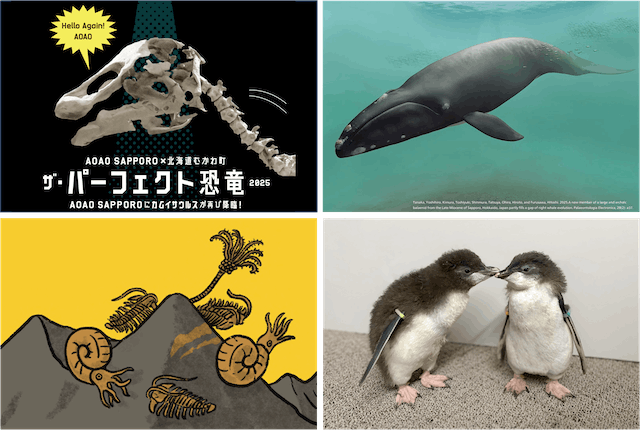 札幌の都市型水族館『AOAO SAPPORO』で、特別企画展『恐竜と海の物語展』が開催されます。今回の目玉は、なんといっても北海道で発見された“生命の証”です。全長約8mの恐竜「カムイサウルス」(むかわ竜)の全身復元骨格(レプリカ)と、2025年に新種と命名された「サッポロクジラ」の背骨の化石(レプリカ)が同時に展示されます。写真家の石川直樹氏をナビゲーターに迎え、アンモナイトの化石やペンギンの雛の成長記録など、太古から現代へ続く壮大な生命の物語を体感できる企画展です。学びの秋に、ぜひ足を運んでみませんか。