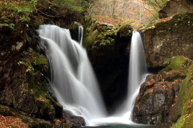 音水渓谷では、秋の紅葉が美しく、特に明神滝周辺の風景が素晴らしいです。滝の音を聞きながら、深紅のモミジに囲まれるひとときは、自然の雄大さを感じることができる貴重な体験です。ハイキングを楽しむにも最適な場所で、家族や友人と一緒に訪れ、心豊かな時間を過ごしてみてはいかがでしょうか。