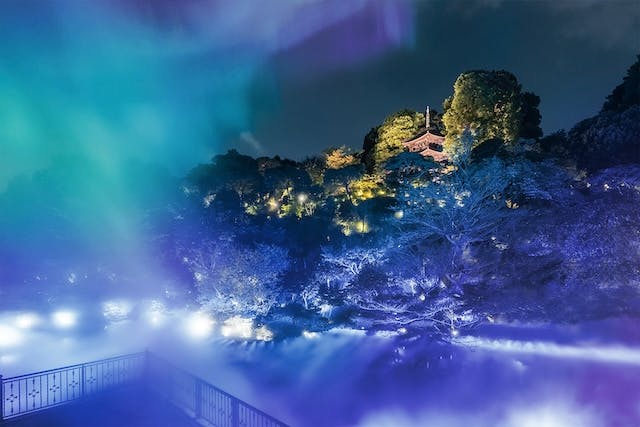 ホテル椿山荘東京では、東京の中心で幻想的な雲海とオーロラを楽しめるイベントが開催中です。特に夜間のライトアップは、庭園内の木々を1,000灯の光で照らし出し、まるで別世界にいるかのような気分に。三重塔が霧に包まれる「天空の三重塔」演出も見逃せません。クリスマスの装飾が施されたロビーや庭園の美しさは、カップルや家族にとって特別な思い出を作るのにぴったりです。幻想的な空間で、心に残る体験をお楽しみください。