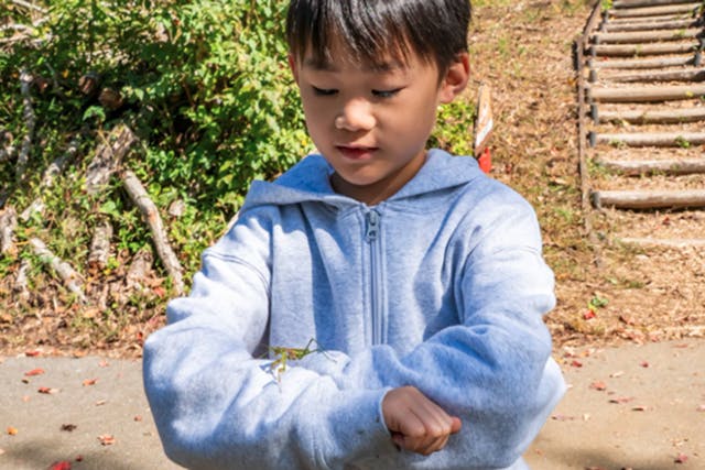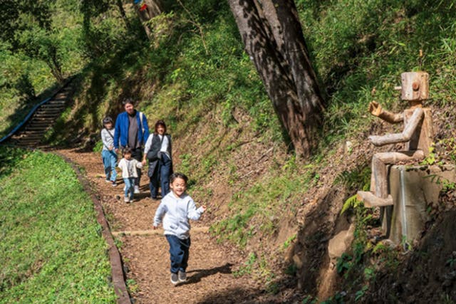 2日目は、「ハローウッズ」へ。森林浴、ブランコ、生き物の観察などを楽しみながら、森の中を散策します。