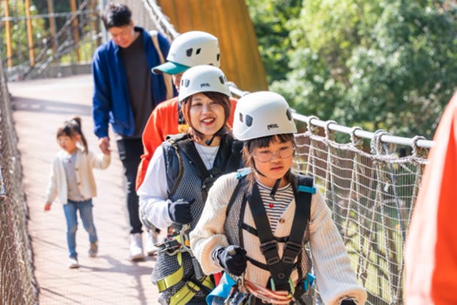 午後は「空のアスレチックひろば KONOMI」と「森感覚アスレチック DOKIDOKI」を体験。大人も童心に帰って一緒に挑戦できるのが楽しい!