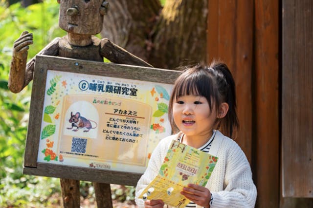行って初めて知ったのですが、ハローウッズの森には「森のファミリーウォークTEKUTEKU」という散策プログラムがあるんです。9匹の生き物がランダムに描かれたビンゴカードを持って、ビンゴを目指しながら楽しく散策を進められます。