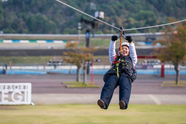 10:00AM もてぎに到着!冒険の始まりには「メガジップライン つばさ」!