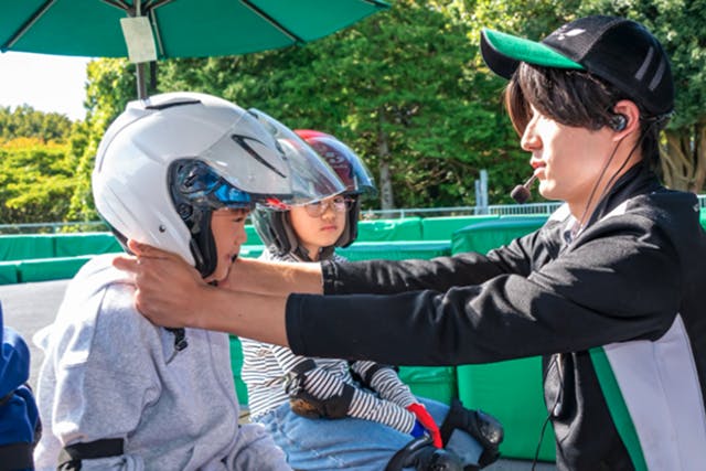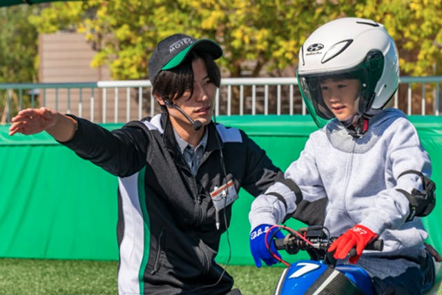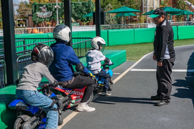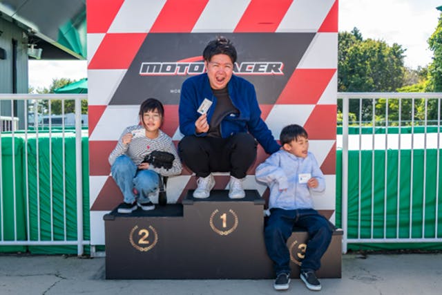 続いて、姉・兄が挑戦したのは、小学3年生から本格的なバイクに乗れる「モトレーサー」。小学1・2年生は少しスピードがゆるやかな「モトツーリング」を上手に運転してモトライセンスAをゲットすれば乗ることができます。自信満々のお兄ちゃんは、難なくクリアして無事モトレーサーへの挑戦権を獲得!