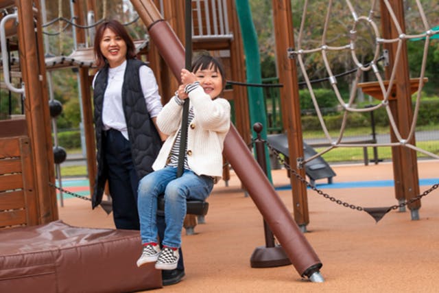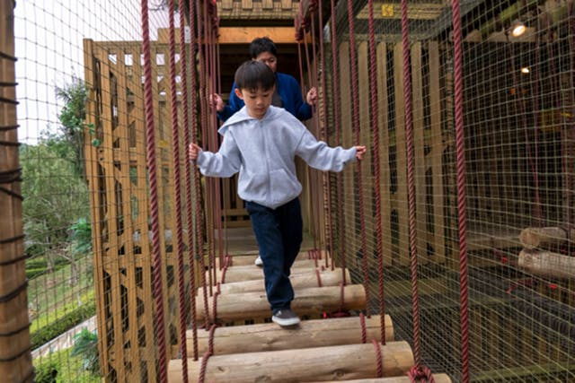 空のアスレチックひろば KONOMIは3歳から体験できます。地上からの高さは約4m!子どもたちがどこにいるか見わたせるのが安心です。