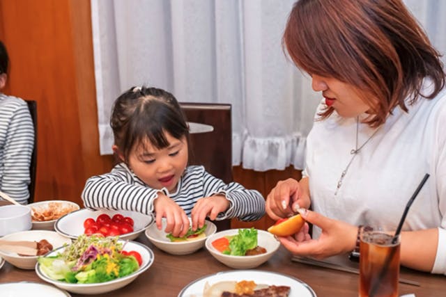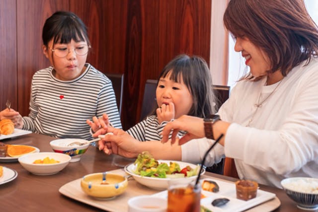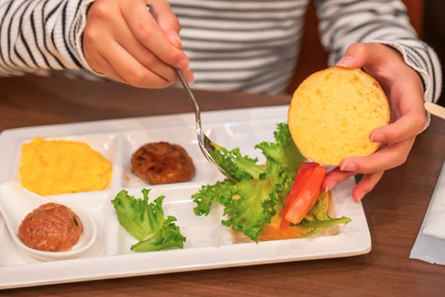 お腹がペコペコになった私たちは、「カフェテリアオーク」へ。季節の食材を使ったプレートから子どもが大好きなカレーやパンケーキまで、大人も子どもも満足できるメニューがあります。キッズメニューが本当に豊富で、ドリンクバー付きなのも地味にうれしいところ。