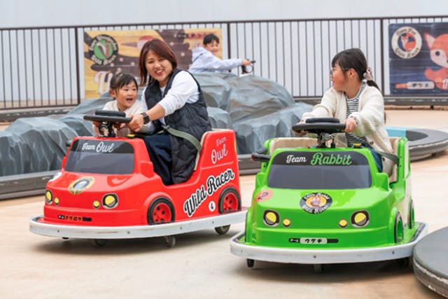 パーク内にある3つのクルマのアトラクション「おさんぽでんでん」、「ワイルドレーサー」、「森の教習所」を堪能。この日はどれも待ち時間がほぼなかったため、好きなアトラクションに好きなだけ乗れました。