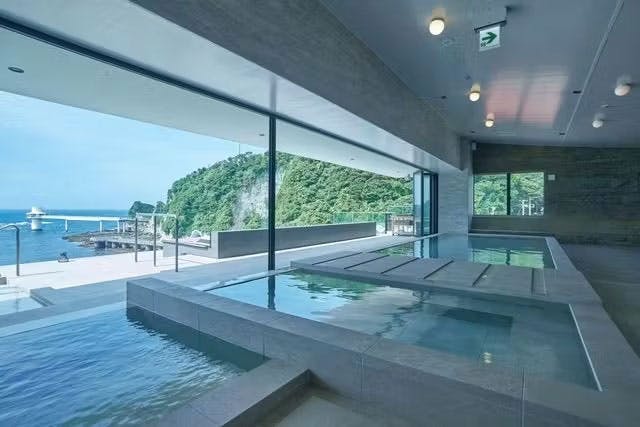 2022年にオープンした、まだ新しい温浴スポットとして人気の「eden」は、サウナ併設のサーマルスプリングスパ(天然温泉スパ)、レストラン、ショップが集まるオールオーシャンビューの複合施設です。日帰りで楽しめる温泉施設としても評判で、勝浦の海との一体感を演出するリアス式海岸の岸壁をイメージした空間には、勝浦の海を一望できるサーマルスプリングスパ(天然温泉スパ)やサウナを完備しています。海と目線を揃えて一体になった気分とともに、最高な癒しのひとときを満喫してください。