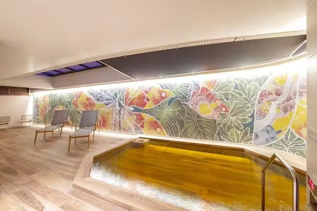 三重城温泉 海人の湯は、那覇市に位置する「ロワジールホテル&スパタワー那覇」の中にある温泉施設です。施設内には、温泉水を使用した全天候型の室内プールと夏季限定で営業される屋外プールもあります。温泉は、沖縄の伝統的な装飾技法である紅型をモチーフにした壁画をガラス越しに楽しむことができ、沖縄らしさを感じられる天然温泉です。