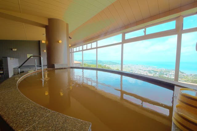 天然温泉さしきの猿人の湯は沖縄本島南部に位置し、豊かな自然に囲まれた「ユインチホテル南城」内にあります。高台にあるため、露天風呂からは沖縄の美しい海と山々を一望でき、心身ともにリフレッシュできる空間が広がっています。加温・加水・ろ過を一切していない源泉かけ流しの温泉に浸かりながら、自然の美しさを感じることができるのがこの施設の魅力です。観光の合間に立ち寄るのもおすすめです。