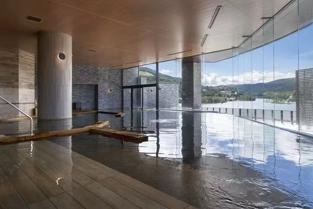 「白樺リゾート 池の平ホテル 湖天の湯」には、澄んだ空気とやわらかい⽔に包まれる⼭と湖を眺め、穏やかなひとときを感じられる混浴露天風呂があります。景⾊と⼀体感を感じられる造りになっているため、まるで湖へ全⾝が溶け込んでいくような開放感を味わえるでしょう。内湯には檜の香り漂う木の湯、趣のある石の湯など見どころもたくさんあります。たっぷりお風呂を楽しんだら湯上がりラウンジで、くつろいでみてはいかがでしょうか。