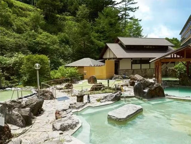 4種の源泉と12の湯船を堪能できる「万座高原ホテル」は、湯治目的の多くの方々に親しまれています。名物の石庭露天風呂や、内風呂と露天風呂で泉質が異なる百泉の湯は特に人気。湯船の種類が多いため、ホテルにいながら湯めぐり気分を味わえるでしょう。山々の景色や星空など、心奪われる絶景の湯めぐり体験をぜひ味わってみてはいかがでしょうか。