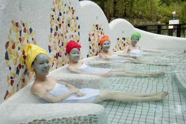 伊豆高原の湯は、自然豊かな雑木林に囲まれた日帰り温泉施設です。天然岩石を使用した野天風呂が特徴で、開放的な空間で心地よい湯浴みを楽しむことができます。ユニークな設備として、浴室内に設置された「泥顔カメラ」で記念写真が撮れる泥パックコーナーがあるのが注目ポイント。泥パックをしたまま湯船でゆっくりとくつろげるのが魅力です。また、湯量豊かな内風呂には、打たせ湯や気泡湯があり、サウナ風呂と水風呂も完備されています。旅の途中やリラックスしたい休日、あるいは仕事帰りに、リゾート気分で心と身体を癒やし、ゆったりとした時間を過ごしてはいかがでしょう。