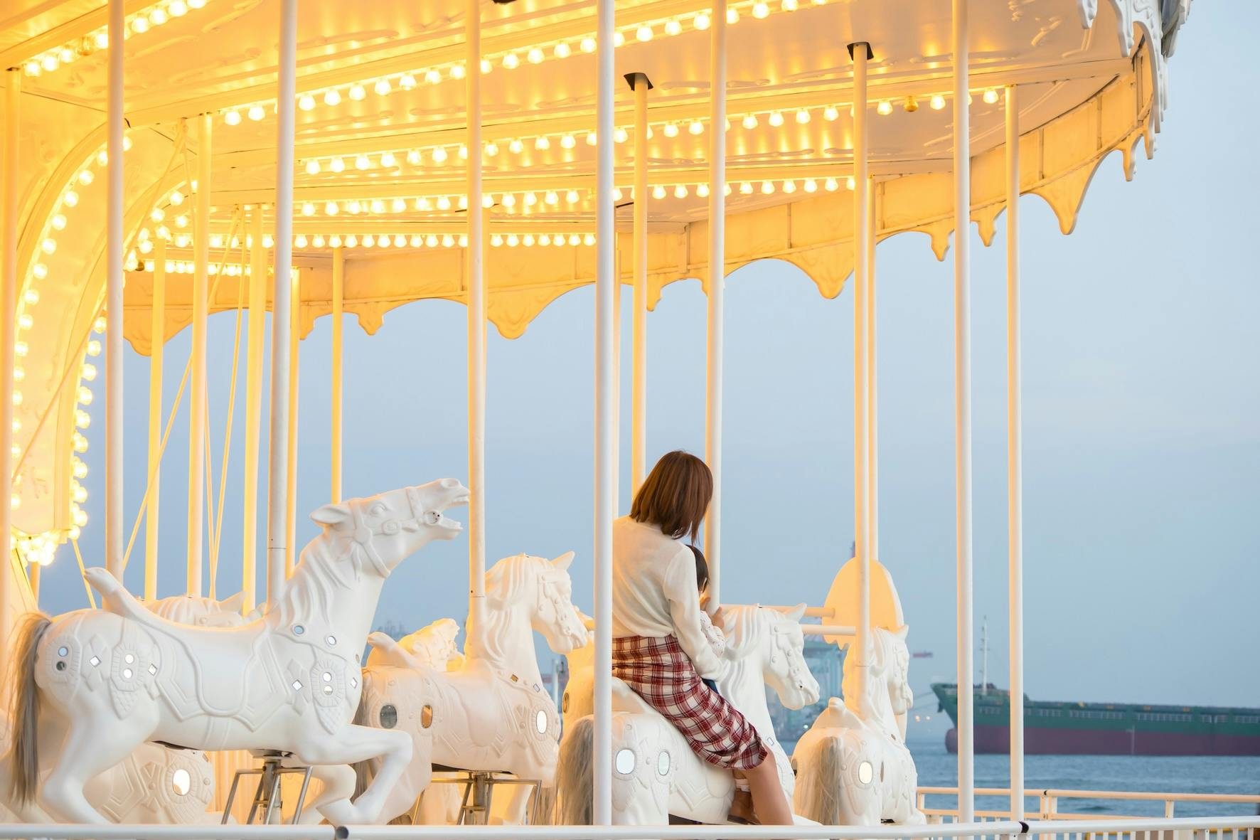棧貳庫KW2の外にある白一色のメリーゴーラウンド。大人も乗れます。