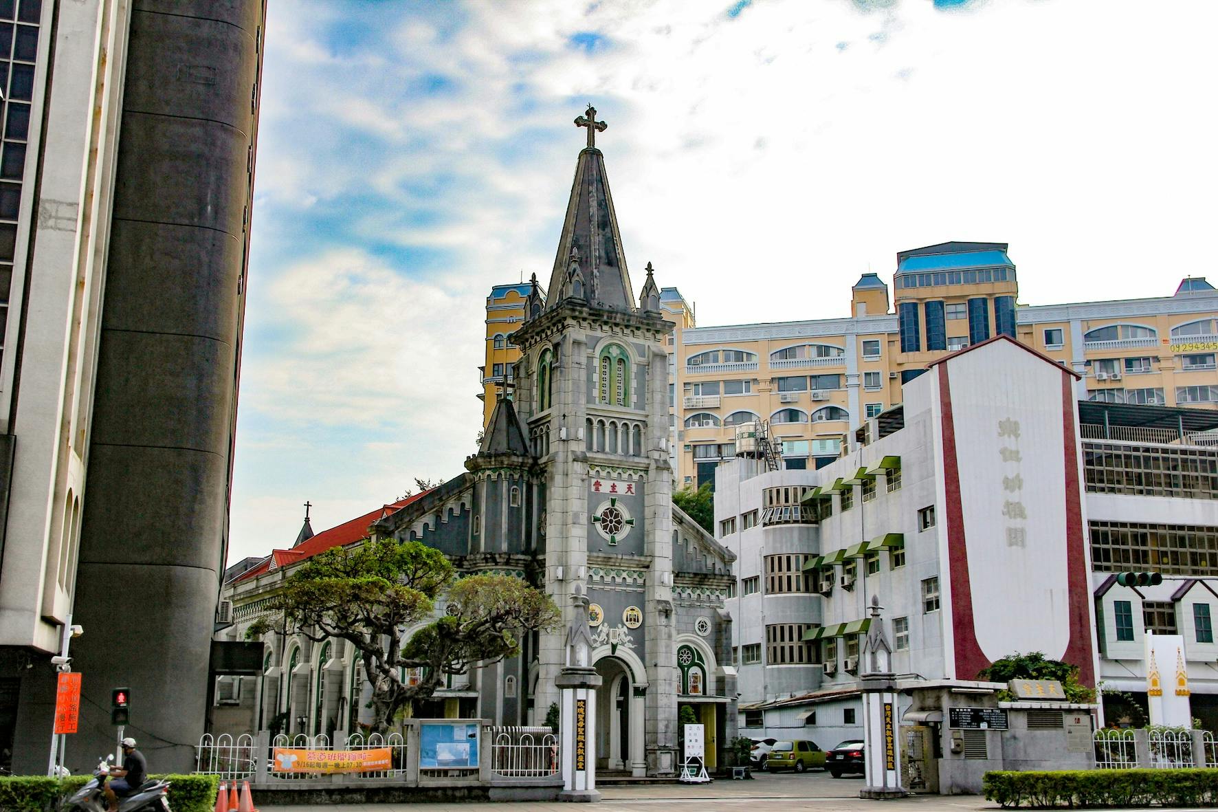 1859年に創立された、台湾で最も古いカトリック教会です。現在の建物はゴシック様式とロマネスク様式が混在した建築となっており、高い尖塔と重厚感が特徴的で、2001年には台湾全土の歴史建築百景コンテストで1位を獲得しています。