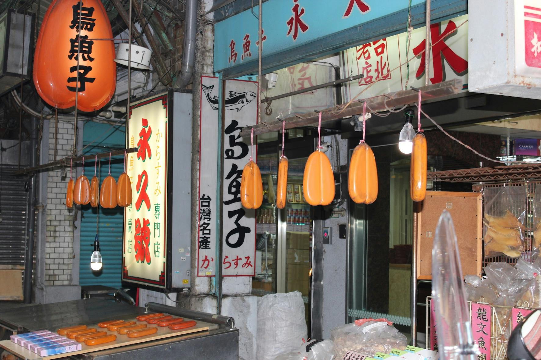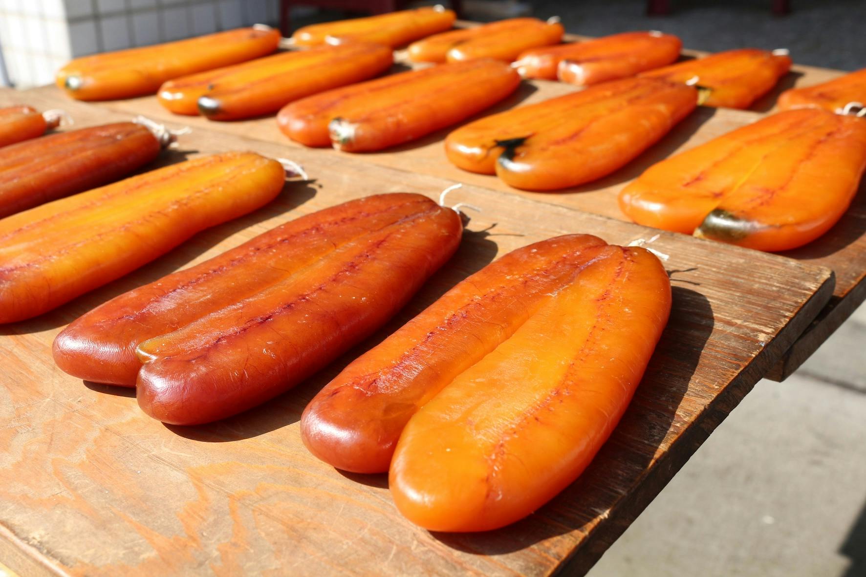 100年以上続くカラスミの専門店。養殖物は一切扱わず、台湾近海で獲れた「天然もの」だけにこだわっています。濃厚でねっとりとした旨味は格別。購入前に試食をさせてくれるので、味に納得してから購入できます。