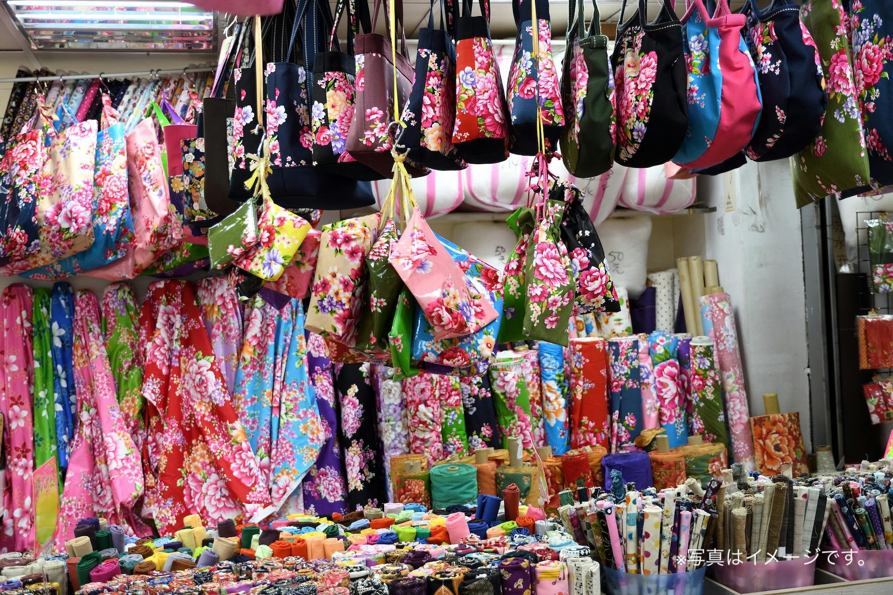 永楽市場の2階にある布問屋街。100軒以上の店がひしめき合い、台湾伝統の「客家花布(ハッカカフ)」やチャイナドレス用の生地などが手に入ります。2階で布を買い、3階の仕立て屋さんに持ち込んでバッグやポーチをオーダーメイドするのも人気です。(3日〜1週間程度かかります)