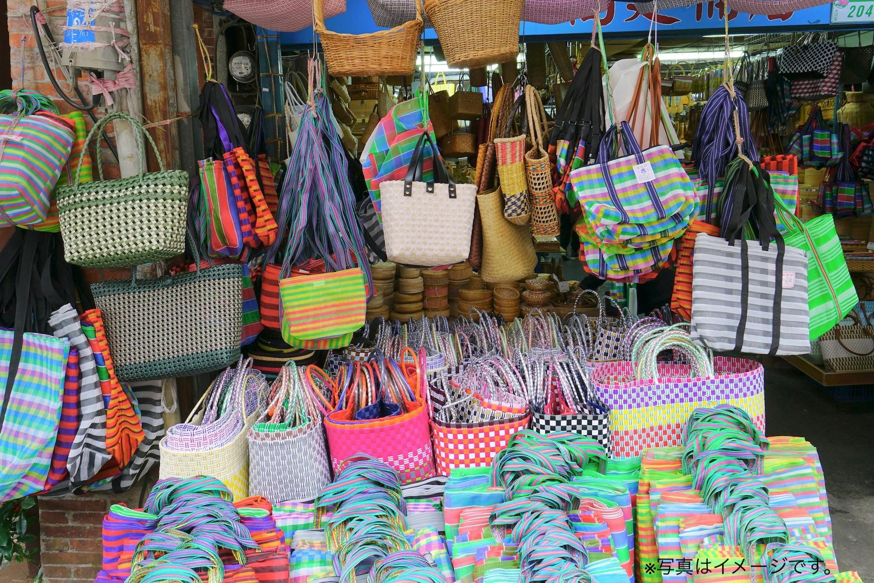 お店の外に溢れんばかりに商品が並ぶ、迪化街のランドマーク的な雑貨店です。台湾らしいカラフルなナイロン製の「漁師網バッグ」は、サイズや色が豊富でばら撒き土産に大人気。丈夫なPPバンドのカゴバッグや、木製のスプーンなどのカトラリーも充実しています。