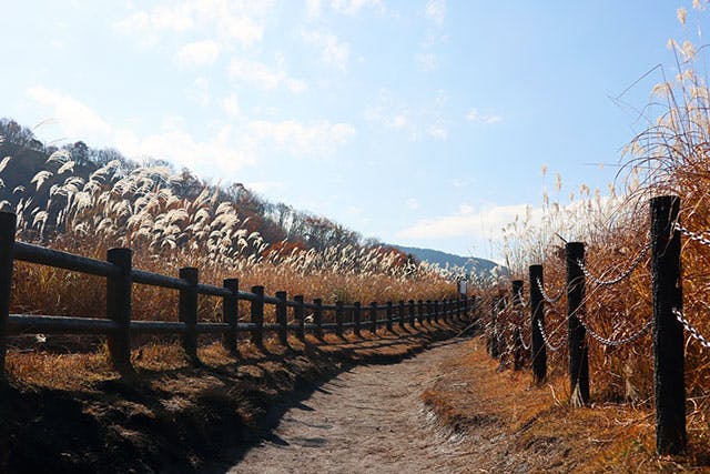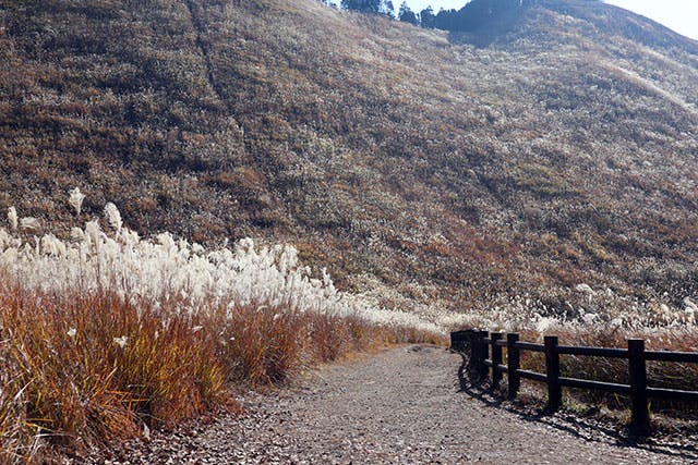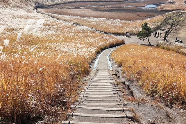 約40ヘクタールの高原が、ススキで埋め尽くされる光景は圧巻のひとこと。その間を縫うように進んでいくハイキングは、まるで別世界に迷い込んだような感動をたっぷり味わえます。