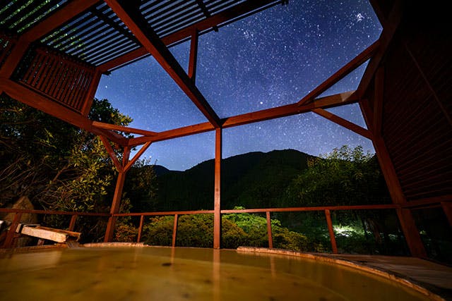 思いきり遊んだあとは、気持ちいい温泉へ直行!湯船で「最高だったね」と笑い合う何気ない時間が、忘れられない思い出に。そして夜も地元の食材でBBQを楽しんだり、都会では見られない満天の星を眺めたり、旅のワクワクがずっと続きます。