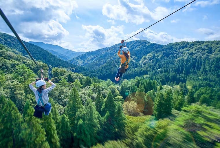 | 特徴 | 日本最大級!全長約1kmの「メガジップライン」 地上12mの空中アスレチック ちびっこ専用の「キッズコース」で冒険者デビュー 足羽川の源流を下る「アドベンチャーボート」 |