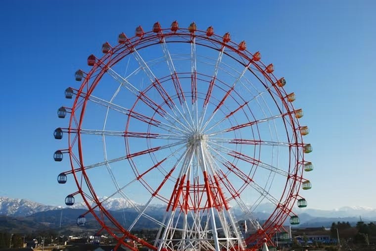 富山湾に面した入園無料の遊園地です。日本海最大級の大観覧車からは富山湾と立山連峰の絶景を一望できます。日本海側最大級の規模を誇る「立体迷路ミラメイズ」や、スリル満点のバイキングなどが人気。夏季には海水プールもオープンし、流れるプールやウォータースライダーで賑わいます。魚津水族館が隣接しているので、セットで楽しむのが定番コースです。