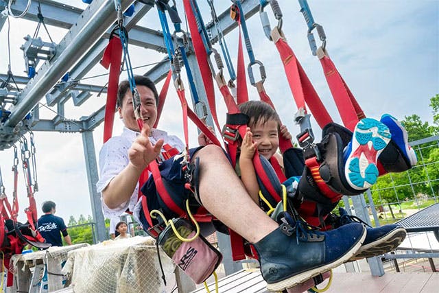| 特徴 | 地上8m、18アイテムの空中アスレチック 約200mも滑り降りる空中スライダー |