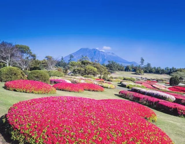 「鹿児島県立吉野公園」は、鹿児島市吉野町の台地(標高234m)に広がる県立都市公園です。敷地面積は約30ヘクタールに及び、約140種7万本の樹木が植えられた緑豊かな自然環境が魅力。園内には南国ムードあふれるソテツ園や噴水広場といった多彩な景観エリアがあり、四季折々の絶景を楽しめます。入園は無料で、ピクニックやスポーツにもおすすめのスポットです。