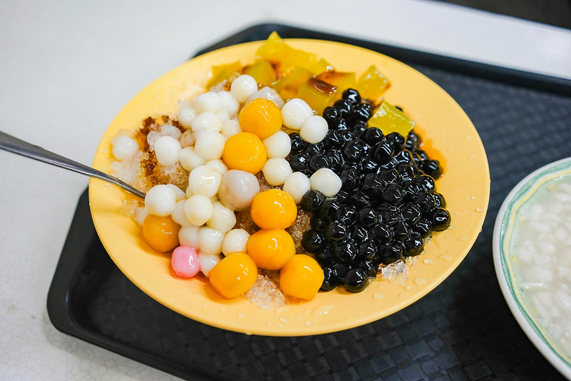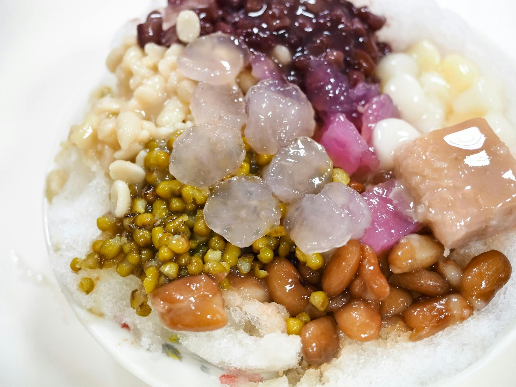 日本のかき氷に近い、ガリガリとした食感の氷。黒糖シロップをかけたり、小豆やタピオカなどの伝統的なトッピングをのせて食べるのが一般的です。