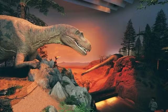 | みどころ | 全長約35メートルのセイスモサウルスをはじめとする巨大な恐竜骨格が並ぶ「アースモール」は圧巻の迫力です。中生代の北九州を再現した体感型ジオラマ「エンバイラマ館」では、光や音、動く恐竜によって太古の世界へタイムスリップしたような臨場感を味わえます。 |