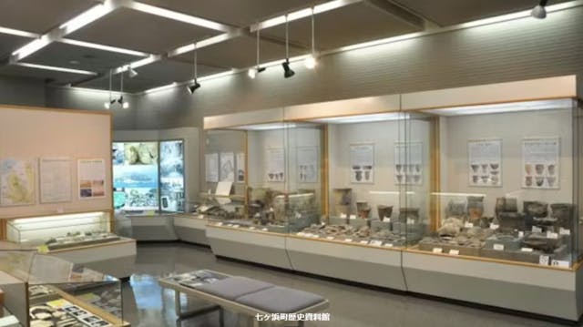 「七ヶ浜町歴史資料館」は、国史跡大木囲貝塚の隣接地に位置する資料館です。木囲貝塚から出土した考古資料をはじめ、漁具や農機具などの民俗資料を収蔵・展示しています。ブラウン管テレビや黒電話など昔の家庭で使用されていた展示品もあり、当時の暮らしぶりを垣間見ることが可能です。
