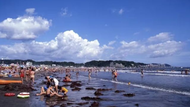 「材木座海水浴場」は、鎌倉市内に位置する静かな海水浴場です。広々とした砂浜では、砂遊びをしたり波打ち際で水と戯れたり、思い思いの時間を過ごすことができます。比較的波が穏やかで、遠浅の海岸が続くため、小さな子ども連れでも安心して海水浴を楽しめるでしょう。夏季には海の家も開設され、多くの家族連れで賑わいます。
