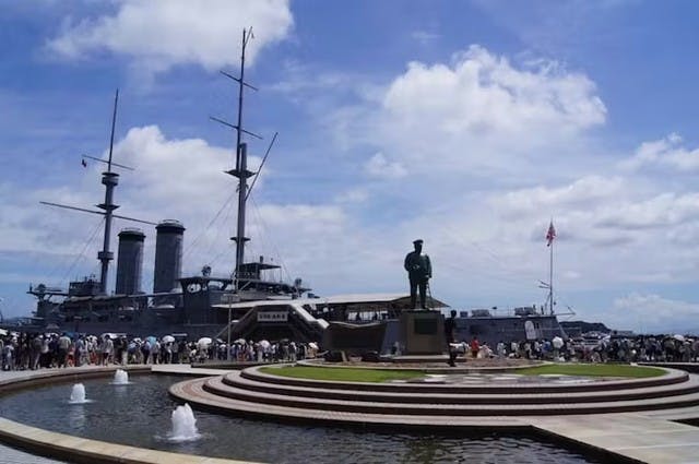 三笠公園は、日本の近代史を象徴する「記念艦三笠」を中心に整備された、横須賀を代表する海沿い公園です。園内では、実際に戦艦として活躍した三笠を間近で見学でき、艦内に入って当時の様子を学べる貴重な体験ができます。甲板に立つと東京湾や猿島を望む景色が広がり、歴史施設でありながら開放感も感じられるのが特徴です。展示スペースでは写真や資料を通して、日本海海戦や当時の暮らしについてわかりやすく紹介されており、子どもでも理解しやすい構成になっています。園内には芝生広場やベンチも多く、見学の合間にゆっくり休憩できる環境が整っているのも嬉しいところ。横須賀らしい歴史と海の景色を同時に楽しめるスポットとして、旅の思い出づくりにもぴったりの場所です。