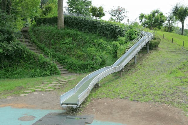 ぼうさいの丘公園は、広大な敷地に充実した遊具が揃う、家族連れに大人気の公園です。一番の注目は、丘の斜面を活かしたダイナミックなロングスライダー!他にも、全身を使って遊べる大型アスレチックや、雲の上を歩いているような感覚が楽しめる「ふわふわドーム」など、子どもが夢中になれるスポットが満載です。夏場には噴水から水が流れ出る「遊びの池」がオープンし、絶好の水遊び場に。園内には小動物とのふれあい広場や、開放感たっぷりの芝生広場もあり、お弁当を持ってピクニックを楽しむのにも最適です。