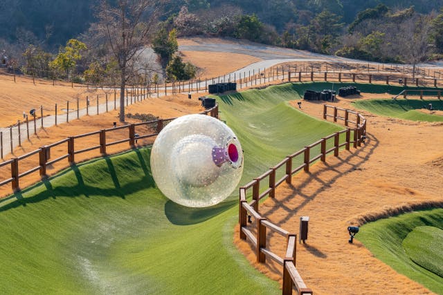 巨大な透明ボールに入って丘を転がり落ちる、唯一無二のアトラクション。宇宙空間を漂っているような不思議な感覚は、一度体験したら病みつきに!