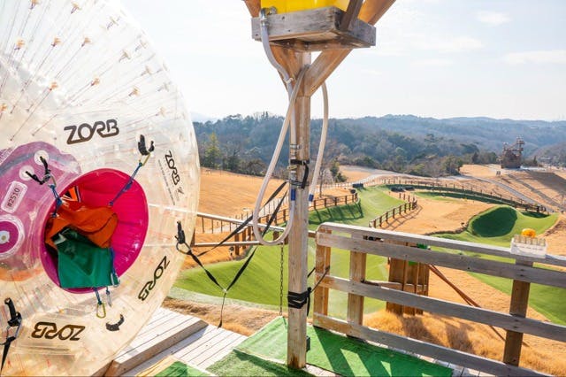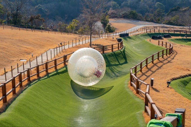 巨大な透明のボールに乗り込み丘の斜面を転がり落ちる、なかなかお目にかかることのないアトラクションです。