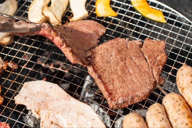分厚いステーキ肉を豪快に焼き上げれば、ジューシーな香りが春の風に乗って食欲をそそります。道具や食材の準備や片付けはスタッフの方に任せられるので手ぶらで利用可能。