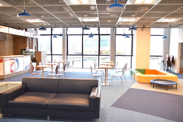 2階には子どもを遊ばせられるスペースや、大人数で休憩できる場所があります。ゆったり座れるソファもあるので、宙に舞う人たちを眺めながらゆっくり過ごすのも楽しそう。グループで訪れた場合は、上から撮影してあげるのもいいですね。