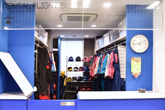 次は、耳栓・フライトスーツ・ヘルメット・ゴーグル・シューズなどをレンタル(無料)します。スニーカーを着用している場合は、シューズをレンタルする必要はありません。靴紐をしっかりと結び直しておくだけで大丈夫です。