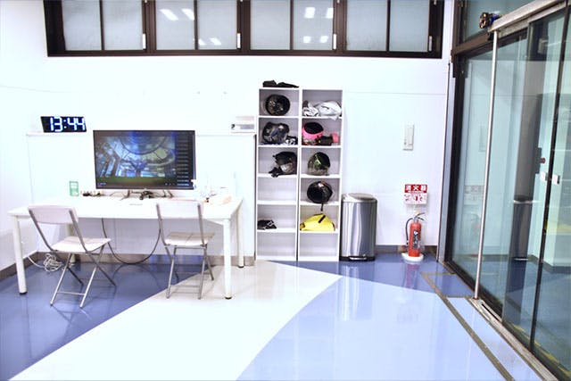 ロッカールームでフライトスーツを着用したら、事前の説明講習に参加します。安全に飛ぶためのレクチャー動画を見ながら、飛んでいる姿をイメージしましょう。ウインドトンネルの中は話声が聞こえないので、レクチャー動画で教えてくれるサインは、しっかりと覚えておく必要があります。