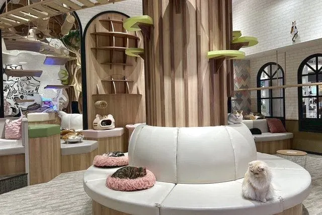 イオンモール高岡東館1階にある「猫カフェ Puchi Marry」は、ショッピングモール内とは思えないほど広々とした空間が魅力です。店内には木の温もりあふれるインテリアと、猫たちが大好きな大きなキャットツリーが配置されています。約20匹の個性豊かな猫たちが、キャットツリーで活発に遊んだり、窓辺で日向ぼっこをしたりと、思い思いに過ごす姿を間近で眺める時間は至福のひととき。ドリンクバー付きの30分コースから、時間を気にせず楽しめるフリータイムプランまで、過ごし方を選べます。Wi-Fiや充電スペースも完備されているため、ショッピングの合間に立ち寄って、猫たちとのんびり過ごすのもおすすめです。