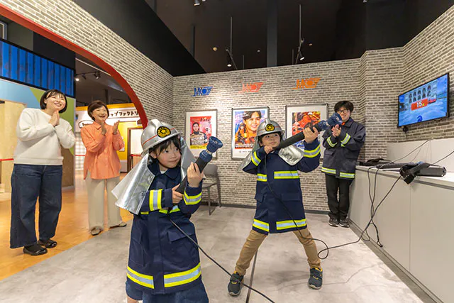 最先端のVR技術を駆使して、迫力満点の消火活動に挑戦!専用のゴーグルを装着し、火災現場をリアルに体感しながら街を炎から守ります 。本物さながらの緊張感を味わいながら、人助けをするヒーローとしての勇敢な心を育めるアクティビティです 。