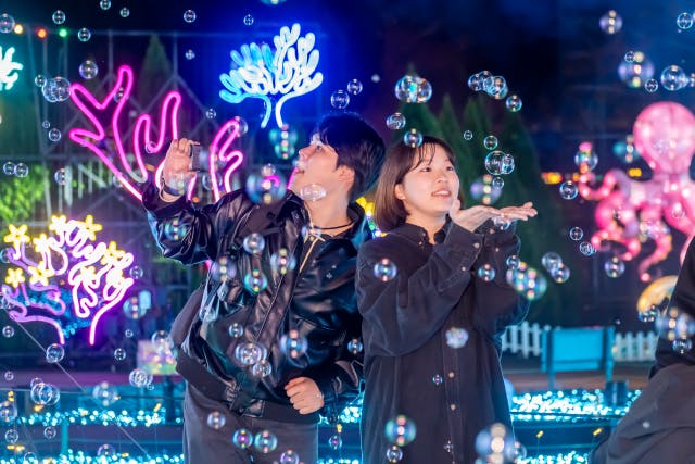約5万4千個のシャボン玉が光に照らされ、夜空を舞う幻想的なショー。光の海に没入するその瞬間、画面越しでは決して味わえない「本物の感動」が待っています。