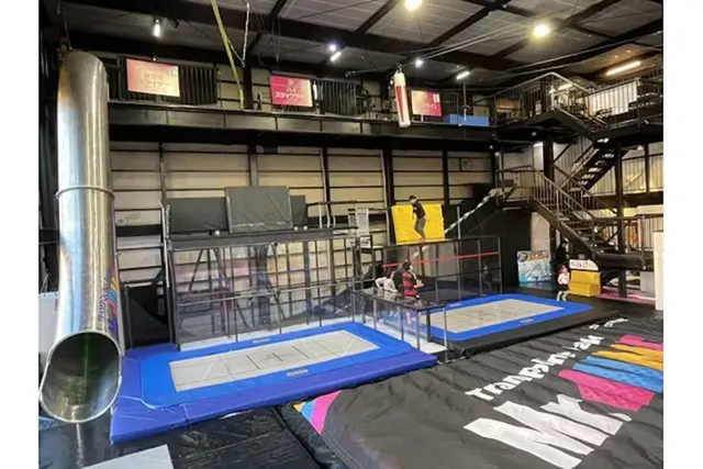 トランポリンとアスレチックを融合させた屋内型遊び場です。施設内には、巨大なエアマットエリアがあり、思い切りジャンプしたり転がったりと、ダイナミックな遊びが体験できます。スリル満点のネットコースは、体を使いながら進むアスレチック要素が満載で、子どもたちの冒険心をくすぐること間違いなし。雨の日や暑い日でも快適に体を動かせるため、運動不足解消やストレス発散にもぴったりです。家族連れや友人同士で、アクティブな一日を過ごすことができます。