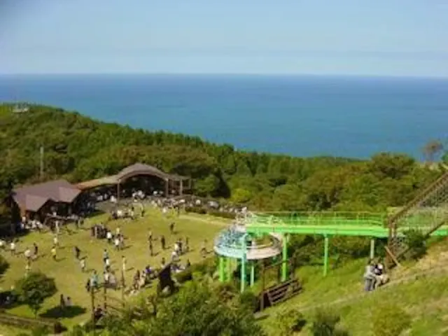 日本海と能登半島を一望できる高台に位置する芝生公園です。ビッグボブスレーやローラースライダー、木製アスレチック遊具が整備されており、屋外で体を動かして遊べます。潮風を感じながら、子どもから大人まで楽しめる無料の施設です。広々とした芝生広場もあるので、思い切り走り回ったり、ピクニックを楽しんだりしてはいかがでしょうか。