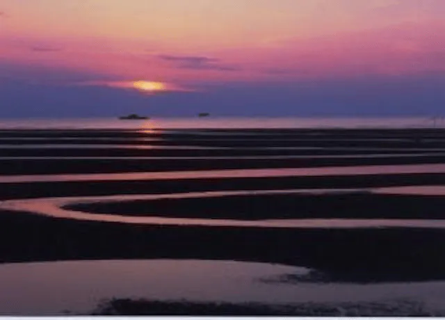 真玉海岸(豊後高田市臼野)は、「日本の夕陽百選」に選ばれた美しい夕陽の景観で知られる遠浅の海岸です。干潟での貝採り(潮干狩り)は漁業資源保護の観点から 漁協組合員以外の一般採貝は禁止されていますが、期間限定でマテ貝掘りが解禁される時期があります。潮干狩り目的で訪れる場合は、年ごとの開催情報や許可の有無を公式サイトで確認しましょう。観光としては、広大な干潟や夕陽の絶景を楽しみながら散策するのがおすすめです。