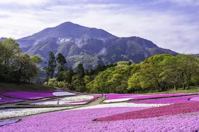 秩父のシンボルである武甲山を背景に、美しい景色を楽しめる公園です。春のお出かけの目玉は「芝桜の丘」で、丘一面がピンクや白の芝桜で埋め尽くされる絶景は、家族写真の背景にぴったりです。園内には木製のアスレチック遊具がそろう「ふれあい牧場」の横の広場もあり、お花見のあとに子どもたちが思いきり遊ぶことができます。羊の放牧も見学できるので、のんびりとした春の休日を過ごしてください。