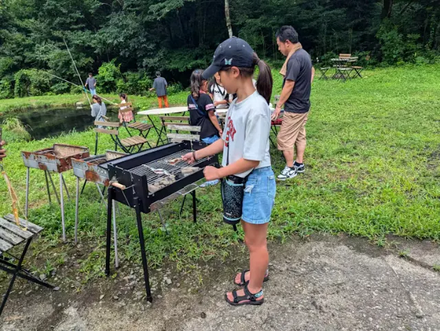 | 特徴 | 池の中を泳ぐ魚を釣って、その場で炭火焼きできる体験型カフェ |