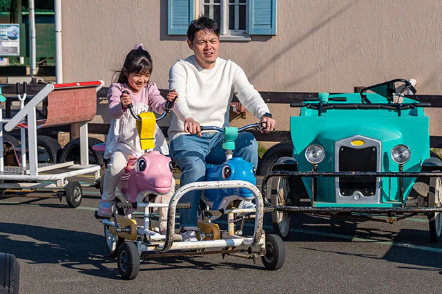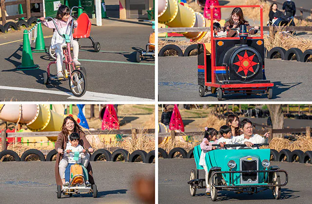 「これ、どうやって進むの!?」と驚くような不思議な形の自転車がいっぱいの「おもしろ自転車」。家族みんなでバラバラの自転車に乗って追いかけっこをする時間は、まさに自由そのものです。