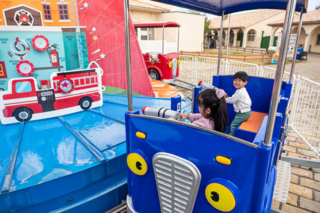 さて、いっぱい遊んだし午後はゆったり過ごそうか…なんていうのは、やっぱり大人の考え。子どもたちは再び目を輝かせて、アトラクションのあるエリアへと走り出します。普段はすぐに「疲れた~」「休憩したい!」なんて言い出すのに、今日はいつもより笑顔も元気もいっぱい!それだけでも親としては嬉しくなっちゃいますよね。